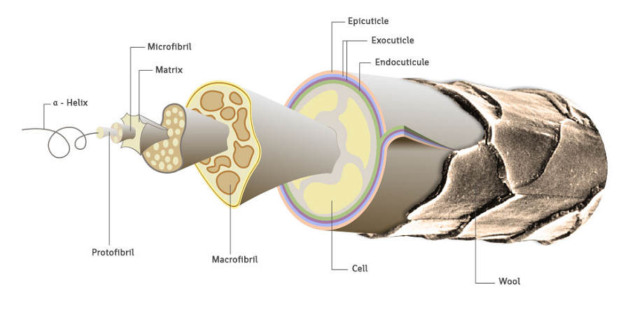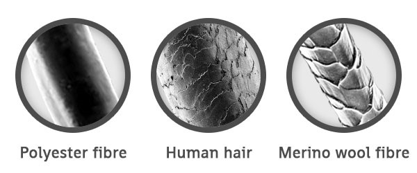 from 13–24 microns (by way of comparison, Shetland wool fibres are 40 microns thick and a strand of human hair is 60 microns thick).