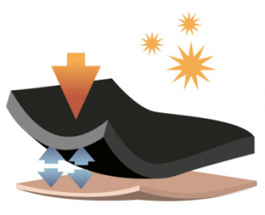 Up to 30% of its weight in water, yet appears dry (its absorption rate is 100–150 times higher than that of polyester).